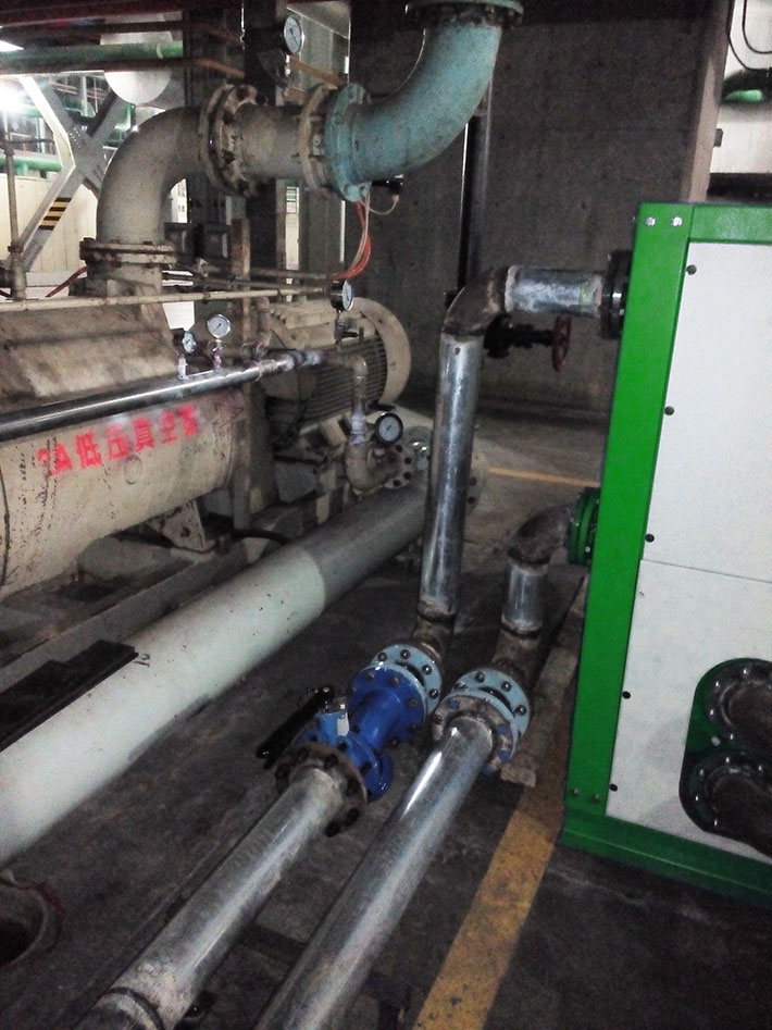 水環式真空泵自帶的降溫系統采用的是開式水循環,夏天在35℃以上,降溫效果不明顯,真空泵的真空度不太理想。根據實地測量的數據,江蘇地區11月份,真空泵工作液的進出口溫度為39℃/42℃數據判斷,工作液在夏天的溫度至少增加3℃左右,即進口溫度達到近42℃,這個溫度點快超過了飽和水的氣化溫度點,此時真空泵的使用工況很差,直接影響電廠的經濟效益。