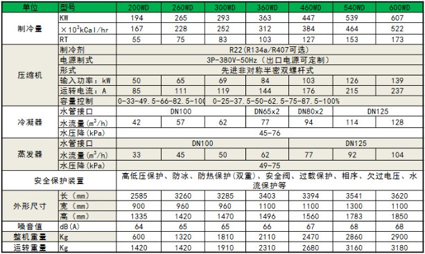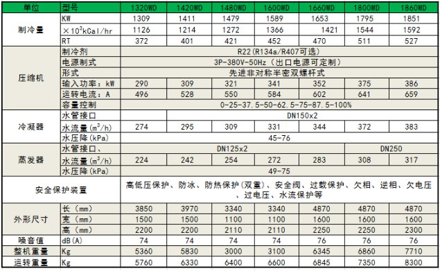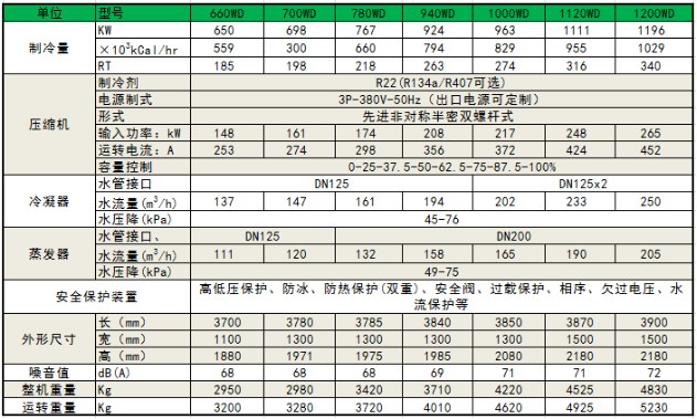 水冷螺桿式工業冷水機組---參數表: