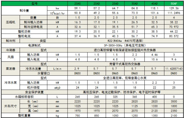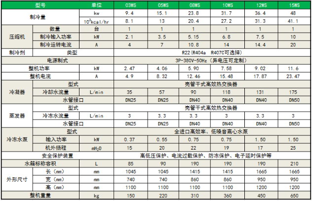 水冷式工業冷水機---參數表: