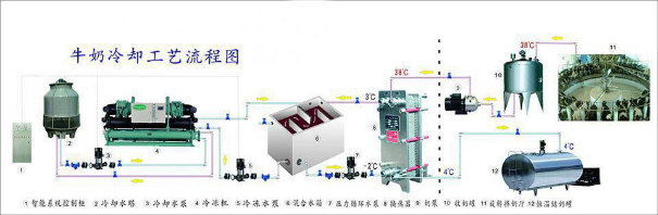 牛奶冷卻一體機(jī)----冷卻工藝流程圖: