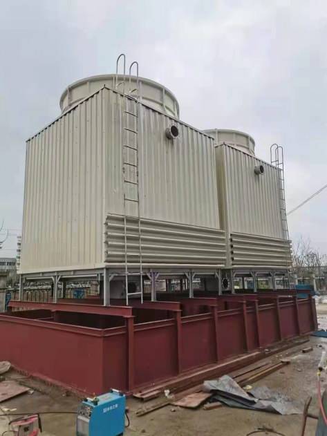 本系列方形橫流式冷卻塔采用橫流式氣熱交換技術,使冷空氣從冷卻塔底部進風,逆流往上進入填料層,實現熱交換帶著熱量。主體采用全鋼結構,玻璃鋼護板,塔體設檢修扶梯供塔頂設備的正常維護管理。采用S波紋填料,改性PVC材料,特殊構造的流水膜以擴散淋水面積;通過噴淋管道和噴頭散濺式的布水方式,實現布水均勻,加大散熱量,增強冷卻效果。