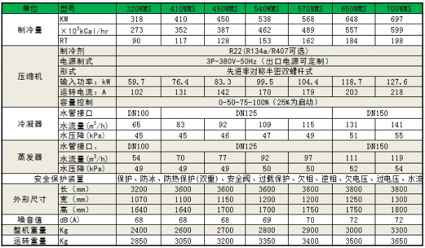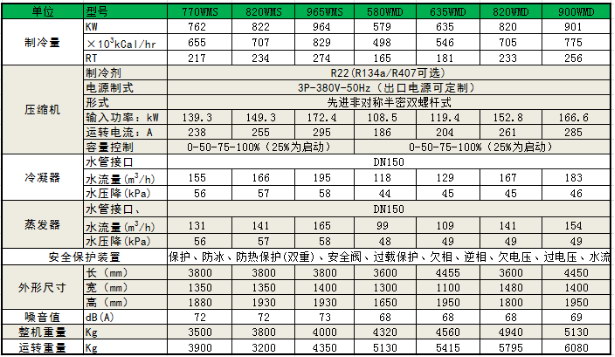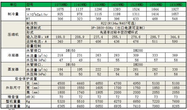 1、制冷量:從80KW至1550KW,流量:14m3/h至266m3/h