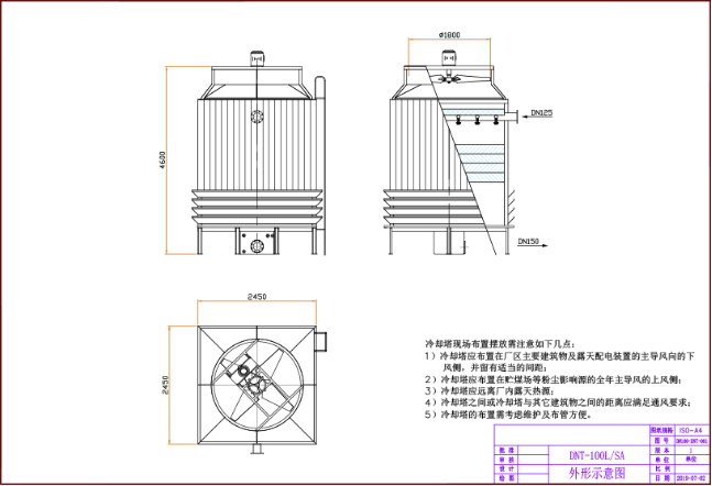 本系列方形逆流式冷卻塔采用逆流式氣熱交換技術,使冷空氣從冷卻塔底部進風,逆流往上進入填料層,實現熱交換帶著熱量。主體采用全鋼結構,玻璃鋼護板,塔體設檢修扶梯供塔頂設備的正常維護管理。采用S波紋填料,改性PVC材料,特殊構造的流水膜以擴散淋水面積;通過噴淋管道和噴頭散濺式的布水方式,實現布水均勻,加大散熱量,增強冷卻效果。