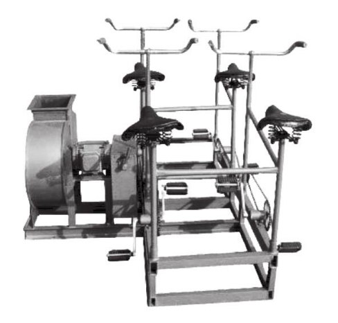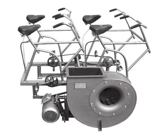 SR900 型腳踏電動兩用風機供地下人防通風配套使用。當供電正常時電動驅使電源遭切斷時,采用人力帶動風機通風。